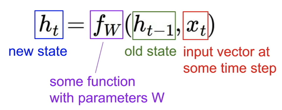 old state에서 나온 output과 현재 time step에서의 input vector를 모델에 넣어서 나온 output이 그 다음 state가 되게 됩니다.