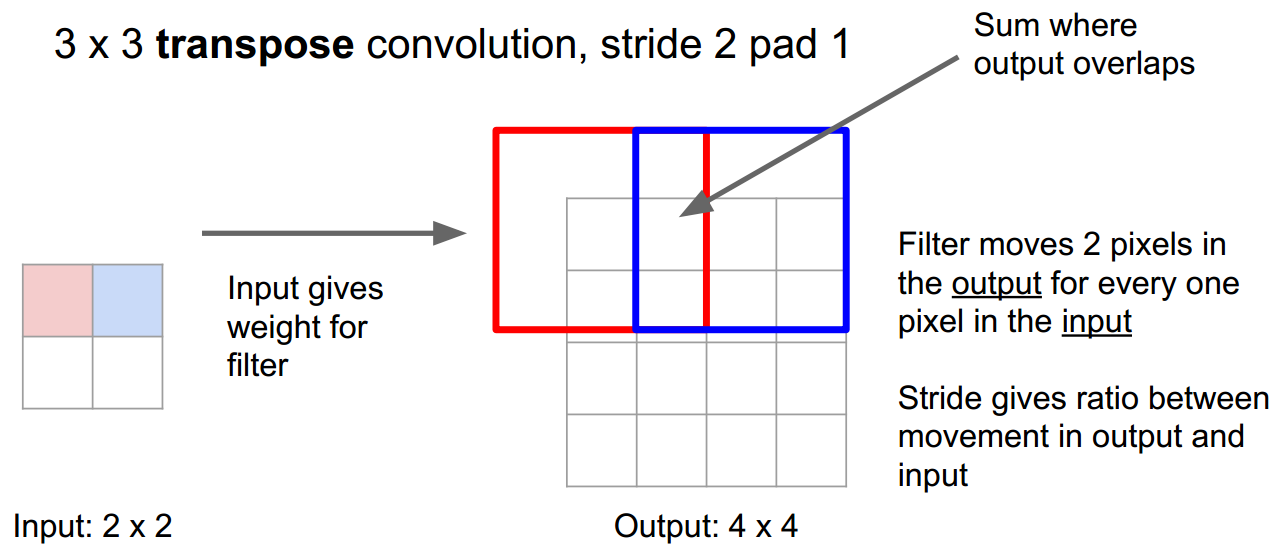 Transpose Convolution 이란 그림과 같이 learnable한 필터에 대해서, Deconvolution 이라고도 부르는데, 엄밀히 따지면 아니기 때문에 transpose convoltuion 이라고 부르는걸 추천합니다. 사실 생각해보면 우리가 알고있는 '합성곱 연산'은 전혀 안쓰이기 때문이죠.