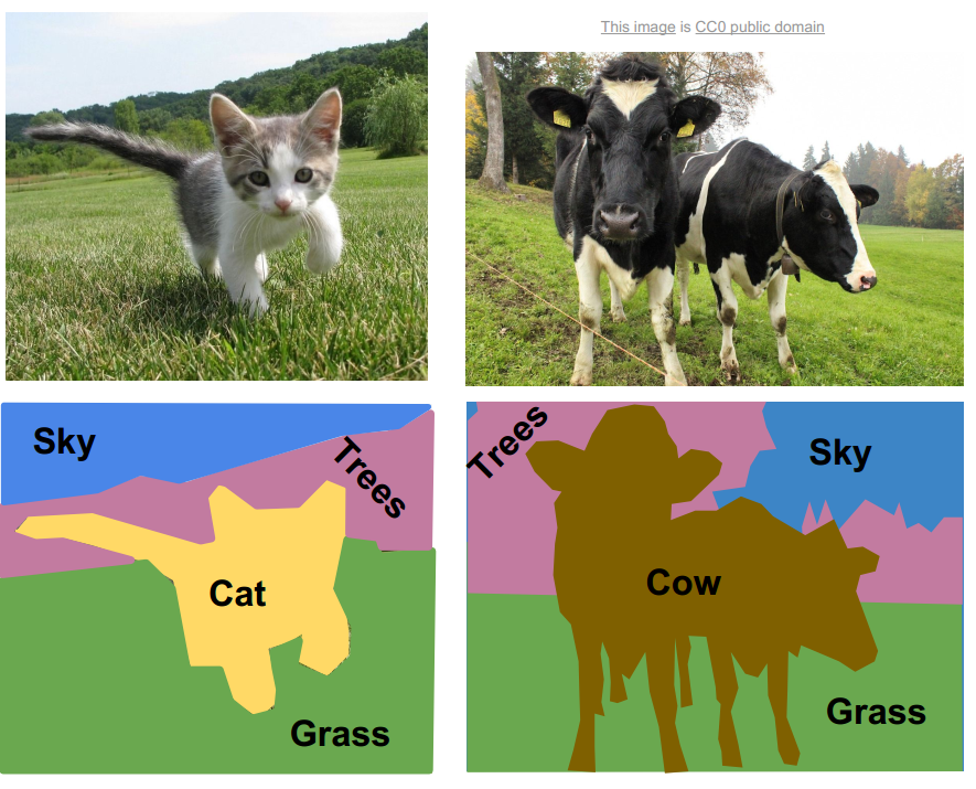 Semantic segmentation이란 위 그림처럼 한 그림 안에서 각 영역을 나누는 분야입니다.
