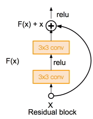 그래서 고안해 낸것이 이 Residual Block입니다. 입력으로 들어온 값들과 Convolution을 거친 값들을 더해서 다음 층으로 전달합니다. 이렇게 입력으로 들어온 값을 바로 출력부로 연결하는 것을 Skip Mechanism이라고 합니다. 또한 기존 네트워크와는 다르게 ResNet에서는 F(x)가 0이 되는 방향으로 학습을 진행합니다. 이렇게 생성된 여러개의 Residual Block이 ResNet을 구성합니다.