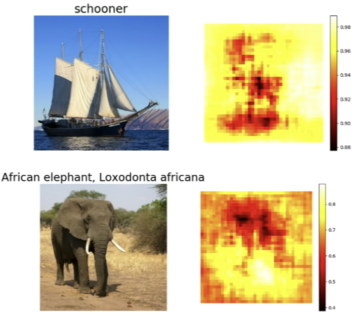 두 번째 전략은 이미지의 특정 부분을 마치 Convolution Filter를 이미지에 슬라이딩 하듯이 순차적으로 가린 뒤 분류를 진행하여 특정 부분을 가렸을 때 얼마나 분류의 결정에 영향을 미치는 지를 계산하고 시각화하는 것이다. 이 방법은 네트워크 구조가 분류에 대한 결정을 내리기 위해 이미지의 지역적인 형태에 집중할 것이라는 가정이 전제되어 있으며 heatmap을 이용해 이를 시각화 해보면 실제로 이 가정이 꽤 신뢰성을 가진다는 것을 발견할 수 있다.
