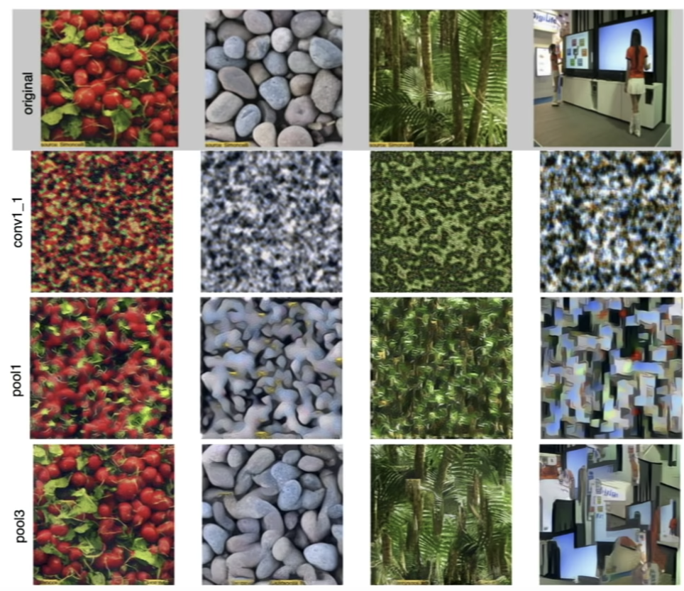 또한 더 깊은 층으로부터 손실을 계산할 수록 더욱 주어진 질감과 유사한 이미지를 얻을 수 있다는 것을 관찰함으로써 ConvNet의 깊은 층이 이미지에 대한 전반적인 정보를 처리하고 있음을 다시 한번 확인할 수 있다.