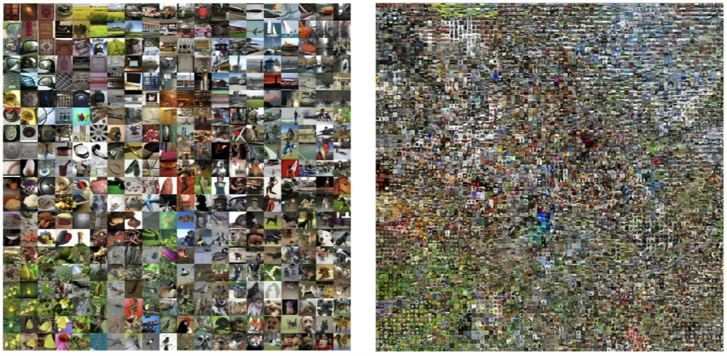 더불어 마지막 FC 층의 정보를 2차원 공간으로 차원을 축소시켜 시각화 하면 다음과 같이 자연스럽게 N개의 군집(Cluster)을 발견할 수 있다. 이미지 내에 있는 물체를 효과적으로 분류하기 위한 방법이 사용된다는 것을 알려주는 반증이라고 생각할 수 있다.