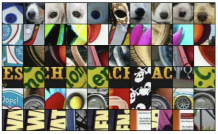 다음으로는 분류 결정에 영향을 주는 요소를 이미지로부터 찾기 위해 크게 세가지 방법을 소개한다. 첫 번째 방법은 특정 계층의 활성화 값을 최대화(Maximize)하는 이미지 패치들(Patches)을 찾는 방법으로 여러 이미지를 네트워크의 입력 값으로 제공한 다음 미리 결정한 특정 활성화 채널의 값에 영향을 많이 주는 이미지를 걸러내는 것이다. 다음 그림은 이를 시각화 한 것으로 이는 실제로 특정 뉴런이 특정 형태에 반응한다는 사실을 우리에게 알려준다.